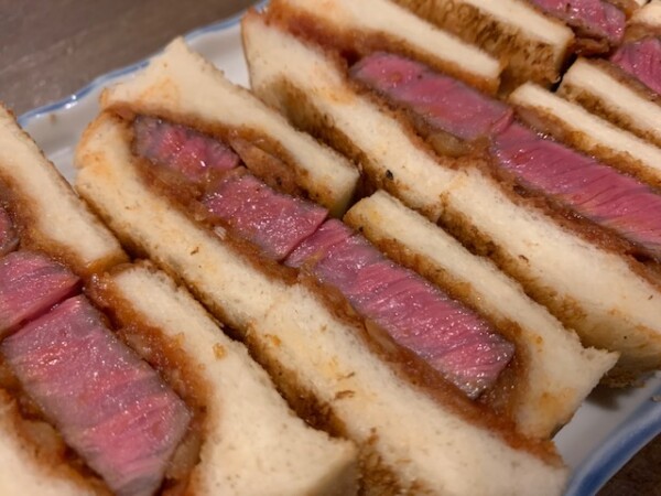 の桜を見る前に食べた、てらやまの和牛炭火焼きビーフサンドウィッチ(笑)
